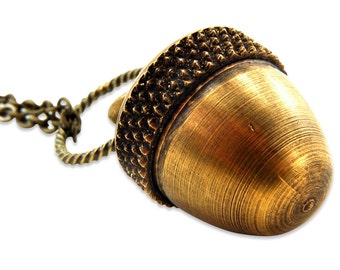 Acorn Canister Locket Cremation Ashes Stash Necklace - Solid Antique Brass - Multiple Chain Lengths Available