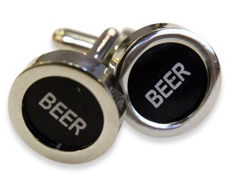 Beer Cuff Links - Cash Register Key Cufflinks - Black BEER Key - by Gwen DELICIOUS Jewelry Design
