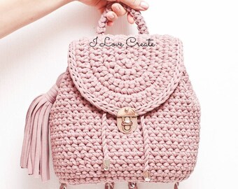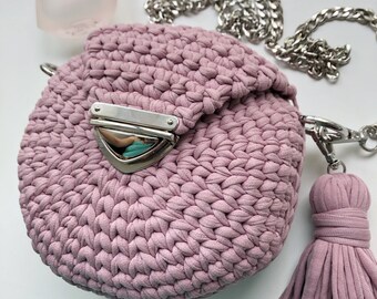 Dusty pink small backpack T-shirt yarn Women rucksack Eco friendly Handmade backpack Small backpack