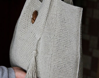 leisure bag //Tote bag//hand knitting //practical bag// boho bag // large bag //shoulder bag // linen bag // bag to market