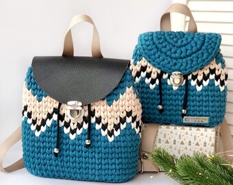 Blue jacquard Womens backpack, mini backpack, huggie women backpack, mini toddler backpack, mom and my matching set, handbags backpack women