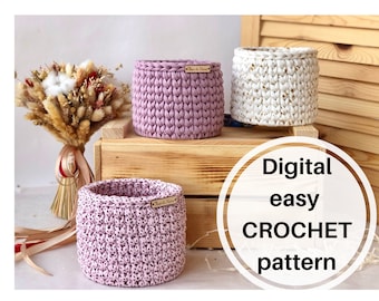 SUPER easy DIY Crochet basket Pattern, Crochet Planter Pattern, small storage crochet basket Pattern, PDF and video Crochet basket pattern