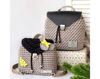 Grey Womens mini backpack, kids mini backpack, matching Outfits, toddler backpack, mom and my matching set, handbags backpack women