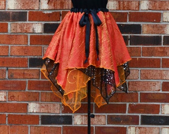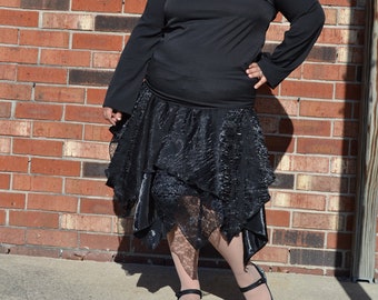 Handcrafted Made-to-Order Custom Pixie Skirt Multi-Layer Scarf Point Hem Black