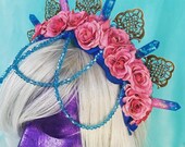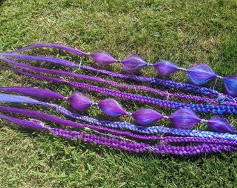 Purple & Blue Clip-in Braids. Set of 2 with Large Bubble Braids and Decorations.
