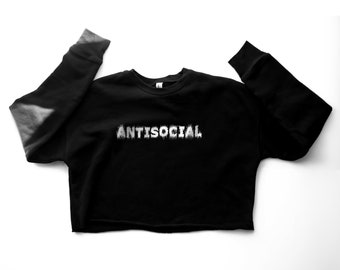 Antisocial Black Sweatshirt, Cropped Long Sleeves Sweater, Printed White On Black
