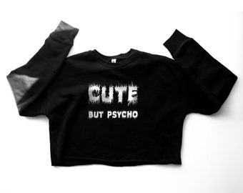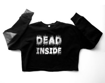 Dead Inside Black Sweatshirt, Cropped Long Sleeves Sweater, Printed White On Black