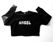 Black Heart Sweatshirt, Cropped Long Sleeves Sweater, Printed White On Black
