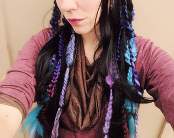 1 Braid 18-20" Messy Teardop Braid. Blue Purple and Burgundy Messy braids. Braid extensions 18-20" long, instant braided look. Ready to Ship