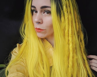 Branded Double/Single Ended (de/se) MIX of Synthetic Dreadlock Extensions with OMBRE from light brown to soft blonde colors.