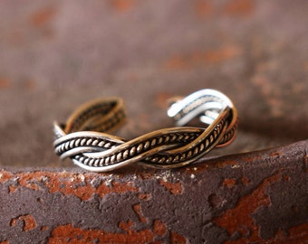Braided Toe Ring, Double Braided Toe Ring, Adjustable Toe Ring, Simple Toe Ring, Sterling Silver Ring, Sterling Silver Jewellery