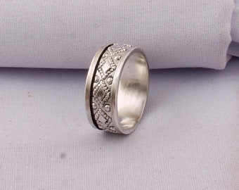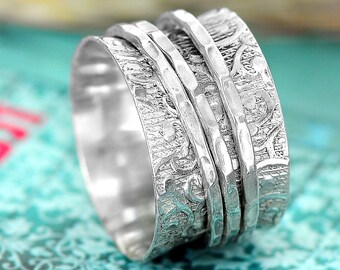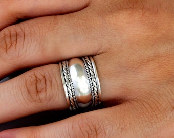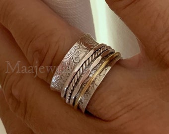 Spinner Ring, Worry Ring, Sterling Silver Ring for Women, Boho Chunky Ring, Wide band Fidget Ring, Ethnic Handmade Meditation Ring,