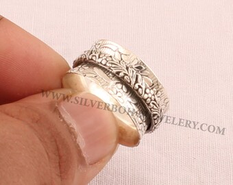 Designer Carved Flower Leaves Spinner Ring / 925 Sterling Silver Ring / Handmade Silver Meditation Ring / Worry Rings / Valentine's Day Gift