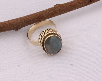 Natural Labradorite Top Quality Gemstone Ring Multi Fire Stone Boho Ring,Yellow Brass Ring,Index Finger Ring,Wedding Brass Ring Gift For Her