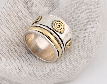 Spinner Ring, Silver Jewellery,Meditation Ring, Spinning Ring,Thumb Ring, Two Tone Ring, 925 Sterling Silver Ring,Handmade Jewellery
