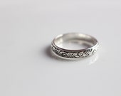 Sterling Silver Stacking Ring Thin Silver Ring Art Nouveau Flower Ring Band Silver Flower Ring Dainty Silver Ring Silver Stacking Rings