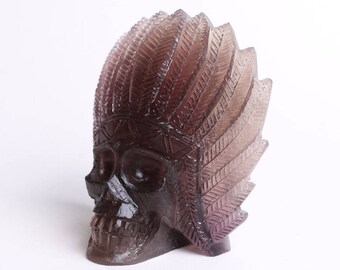 Natural Purple Gray Fluorite Carved Indians Skull,Crystal Healing ,Pretty Beautiful crystal head J743