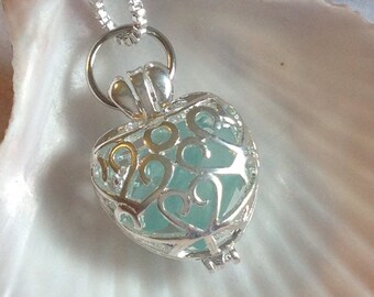 Sale Sea glass necklace-authentic seaglass jewelry-glass heart pendant-SS beach glass necklace-Seaglass jewelry gifts-heart sea glass locket