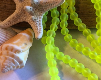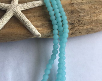 4mm sea Opal sea glass bead- Seaglass drilled round bead- Beach Glass Bead - Cutluted Sea Glass- Frosted Glass- Recycled glass- Sea Glass