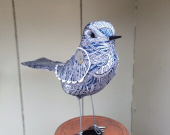 Handmade fabric bird, model, liberty print fabric, soft sculpture