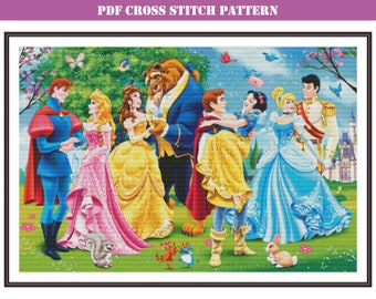 Disney Counted Cross Stitch Pattern | Large Cross Stitch Chart | Disney Love Couples | Sleeping Beauty | Cinderella | Snow White | Beast