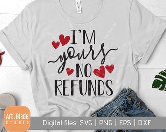 I am yours no refund svg, Valentine's Day Cut File, Funny Cute Quote, Girl Heart Saying svg, Women's Shirt dxf eps png, Silhouette & Cricut