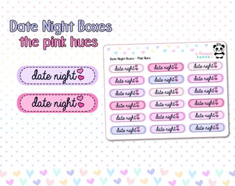 Date Night Boxes - Pink - Hobo Weeks Hobonichi Erin Condren Happy Planner Print Pression - Pastel Functional Planner Stickers Bullet Journal