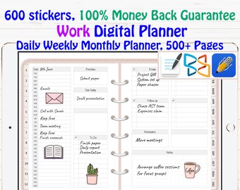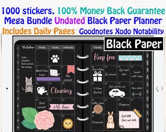 Black Paper Digital Planner Goodnotes Xodo Notability UNDATED Daily Weekly Monthly Monday Sunday Start 1000 Stickers