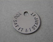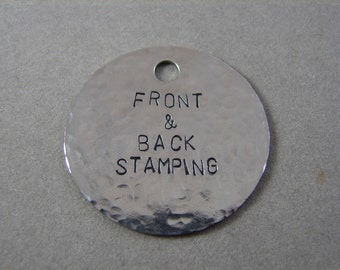 LARGE 1 1/2 inch Hammered Texture Stainless Steel Tag- Front and Back Stamping