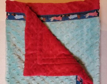 Dachshund Dog Cuddly Baby Blanket with Minkee 33x33 Very warm