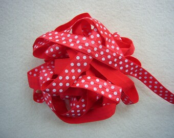5/8" Fold Over Elastic, Printed FOE,5 yards, White on Red Dots