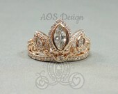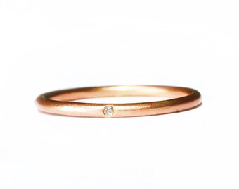 Rose gold simple diamond ring, 14k elegant thin diamond stacking ring. Simple engagement ring or wedding band, gift for her