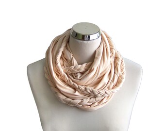 Braided Infinity Scarf, Ivory infinity scarf, Cream Jersey circle scarf