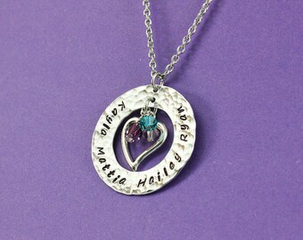 Personalized Mommy Necklace - Hammered Washer Birthstone Necklace - Grandma Necklace - Mother - Grandmother - Mom Jewelry - Name Necklace