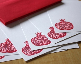 Pomegranate - Flat Note Stationery - Hand Printed - Set of 6