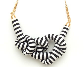 Stripe Rope Knot Necklace - BLACK