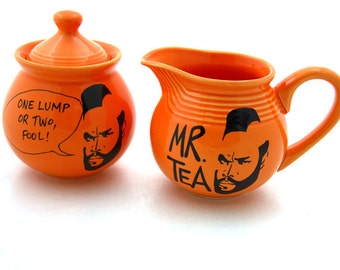 Sugar bowl creamer set Mr T Tea for teaset bright orange