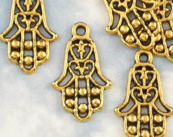 10 Hamsa or Hand of Fatima Charms - 23mm Antique Gold Tone Perfect for Earrings - Evil Eye Protection (P722)