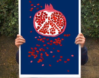 Home decor - Indigo Pomegranate fruit - Kitchen print - 20"x27" - archival fine art giclée print