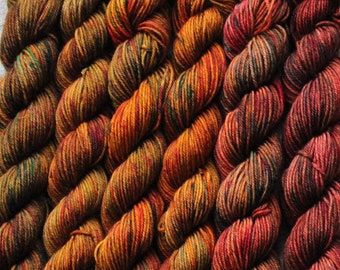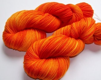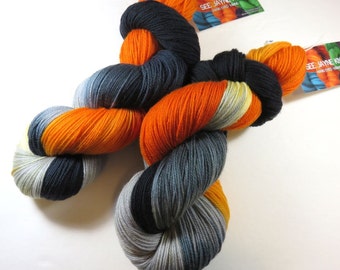 Hand Dyed Superwash Ultra Merino Sock Fingering Yarn -- Psychotic Pumpkin