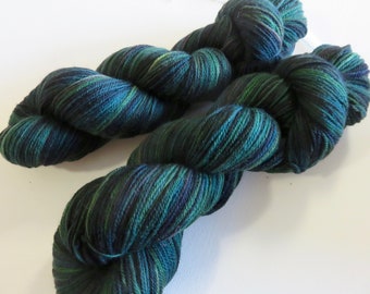 Hand Dyed Superwash Ultra Merino Sock Fingering Yarn -- Midnight Forest Green