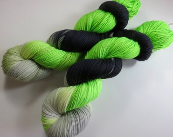 Hand Painted Superwash Merino and Nylon 4-Ply Sock Fingering Yarn -- Caution Zombie