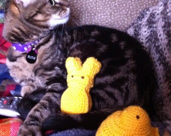Cat Toy Crochet "Marshmallow Treet" Bunnies and Chicks with jingle bell. Set of 2