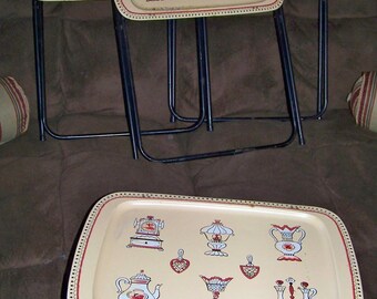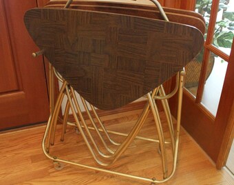 Vintage Set of 4 Standing Folding TV Trays -Vintage Design with Antiques Design- Unique Set