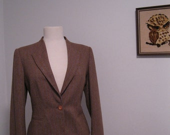 vintage jacket blazer slim fit feminine BROWN pinstripe