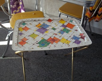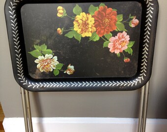 Vintage Floral Painted Folding TV Tray/Side Table/Serving Tray