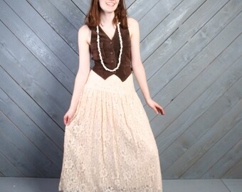 80s LACE SKIRT / Palest Peach Blush Dropwaist Midi, s