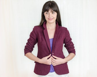 Vintage 1970s Womens Blazer - 70s Jacket - Mélange Plum Wool Coat - S