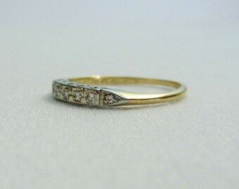 Vintage Diamond Wedding Band. Two Tone Gold Ring with Diamonds, Circa 1940s.