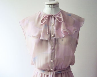 Vintage 70s Tea Dress Renaissance Collar Pastel Pink Latte Kandinsky Florals